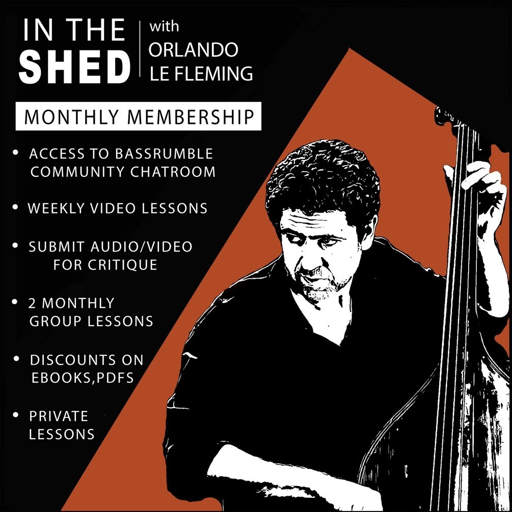 Bassrumble is a private group chat dedicated to jazz double bass, electric bass and other related styles of music from a bass player's perspective. You will be a part of a bass community and have access to ask questions, share music/ideas and get advice from Orlando and the other great bass player members of In The Shed. Bassrumble also features previous Q & As with Harish Rhagavan, Matt Brewer, Doug Weiss, Kevin Scott, Alex Claffy and Rick Rosato
